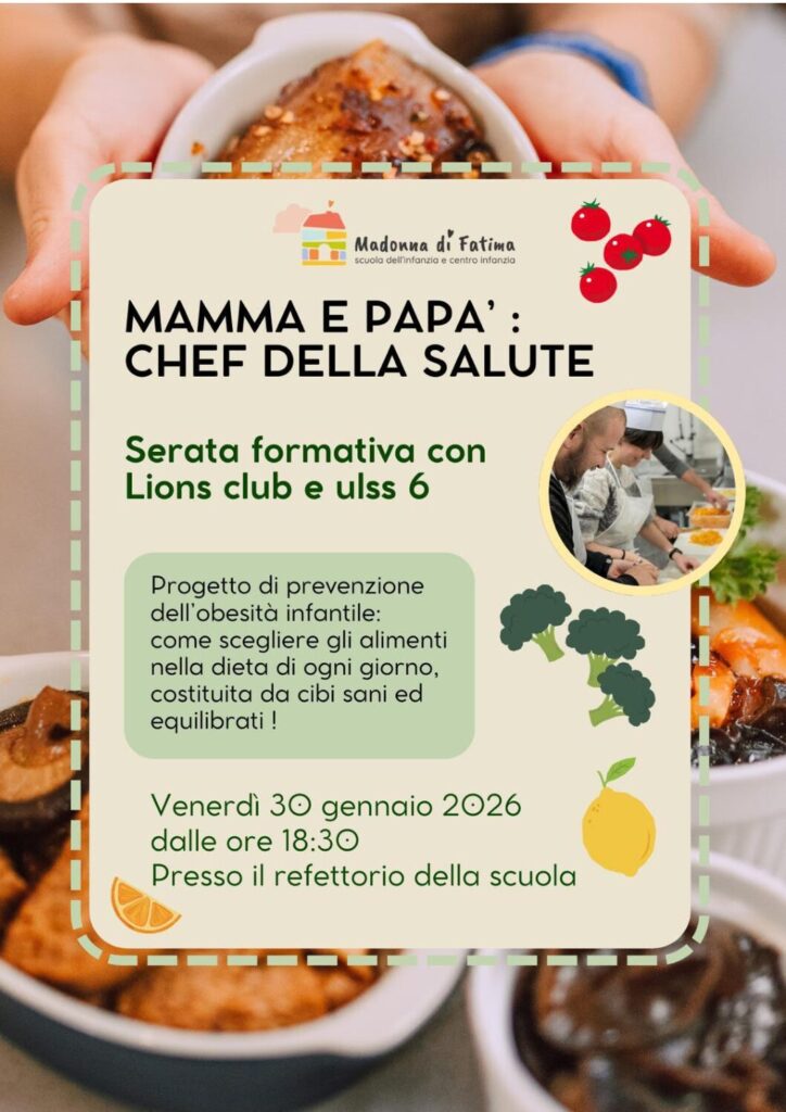 Sotto la guida dello Chef Sandro Turcato i genitori vengono formati nella preparazione di piatti leggeri, sani e sopra tutto gustosi. l’obiettivo è dimostrare che un’alimentazione corretta non significa rinunciare al piacere della tavola, ma riscoprire ingredienti genuini trasformandoli con creatività. A conclusione della serata i piatti preparati verranno consumati e gustati da grandi e piccini!!!
